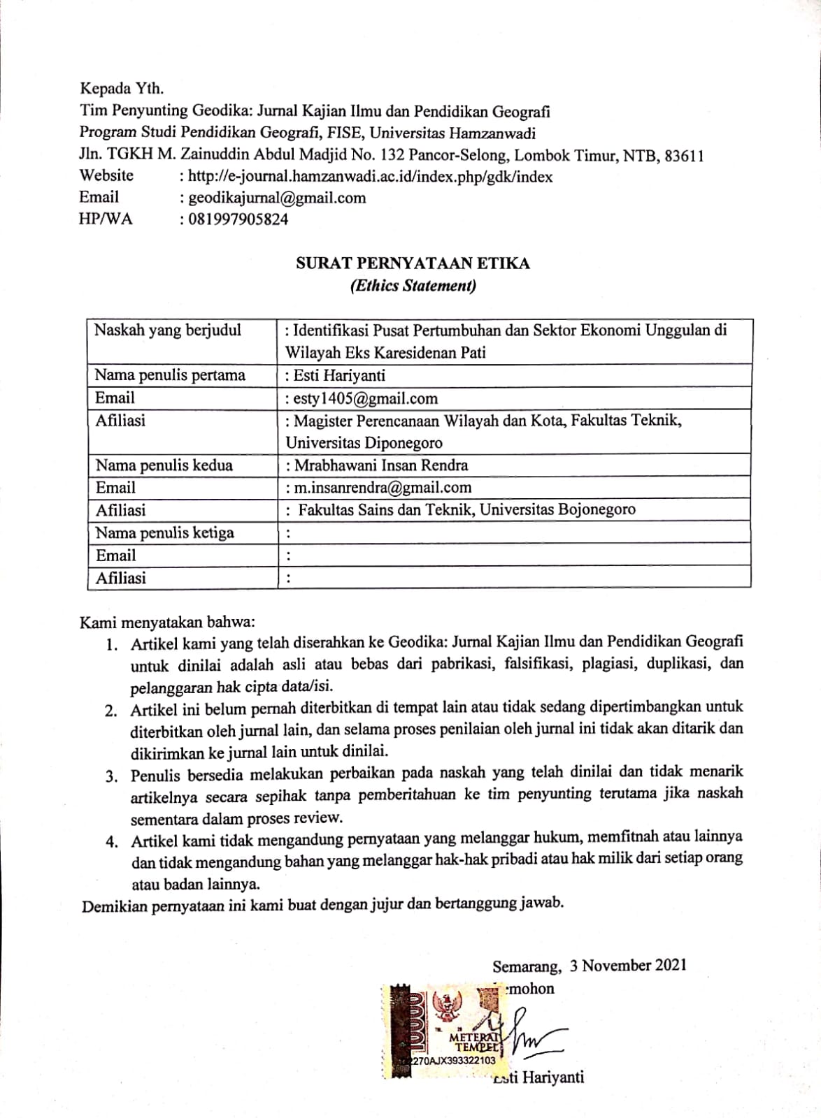 pusat pertumbuhan, wilayah pengaruh, sektor unggulan, WanarakutiAbstract