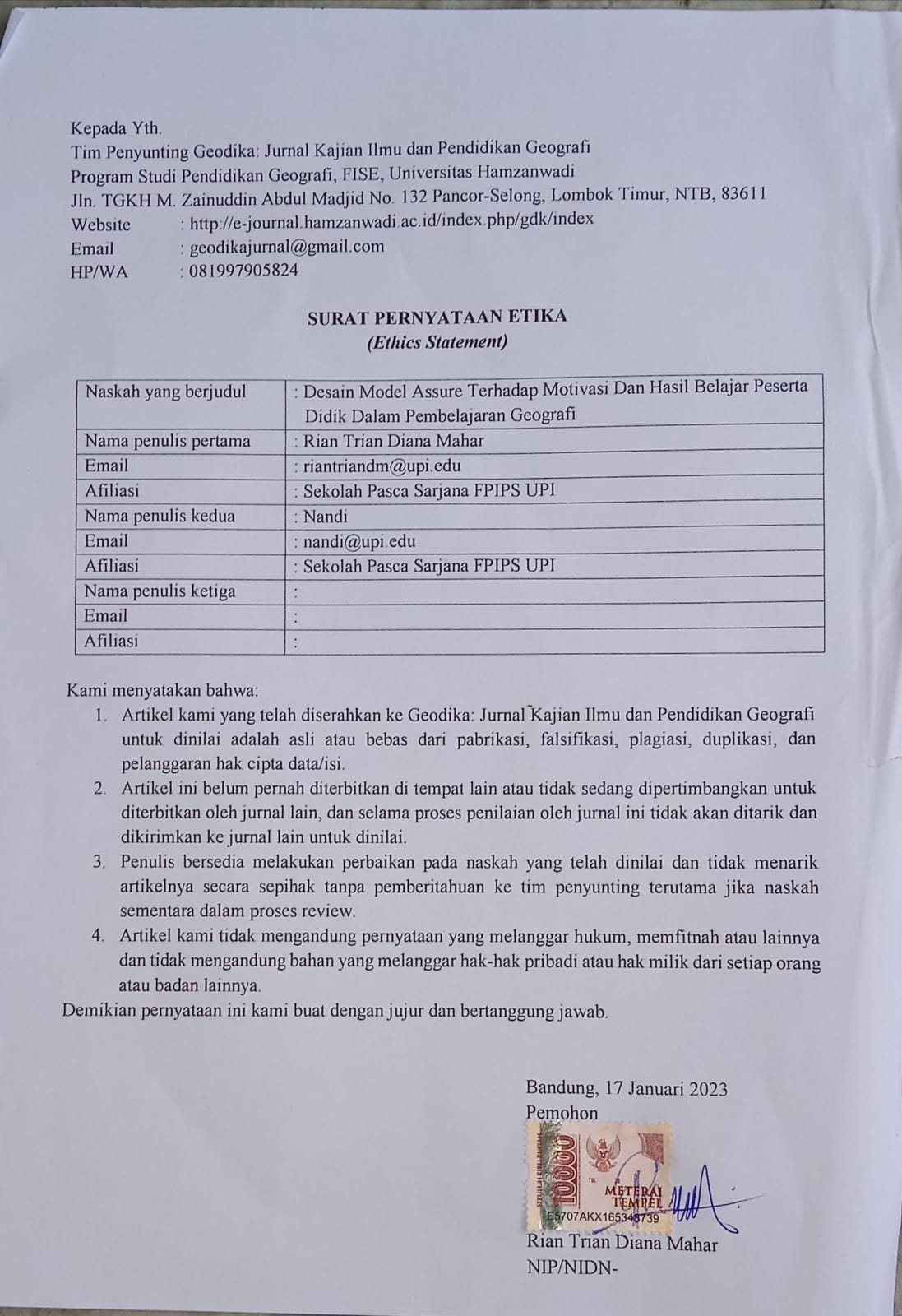 Desain Model ASSURE Terhadap Motivasi dan Hasil Belajar Peserta Didik pada Pembelajaran Geografi