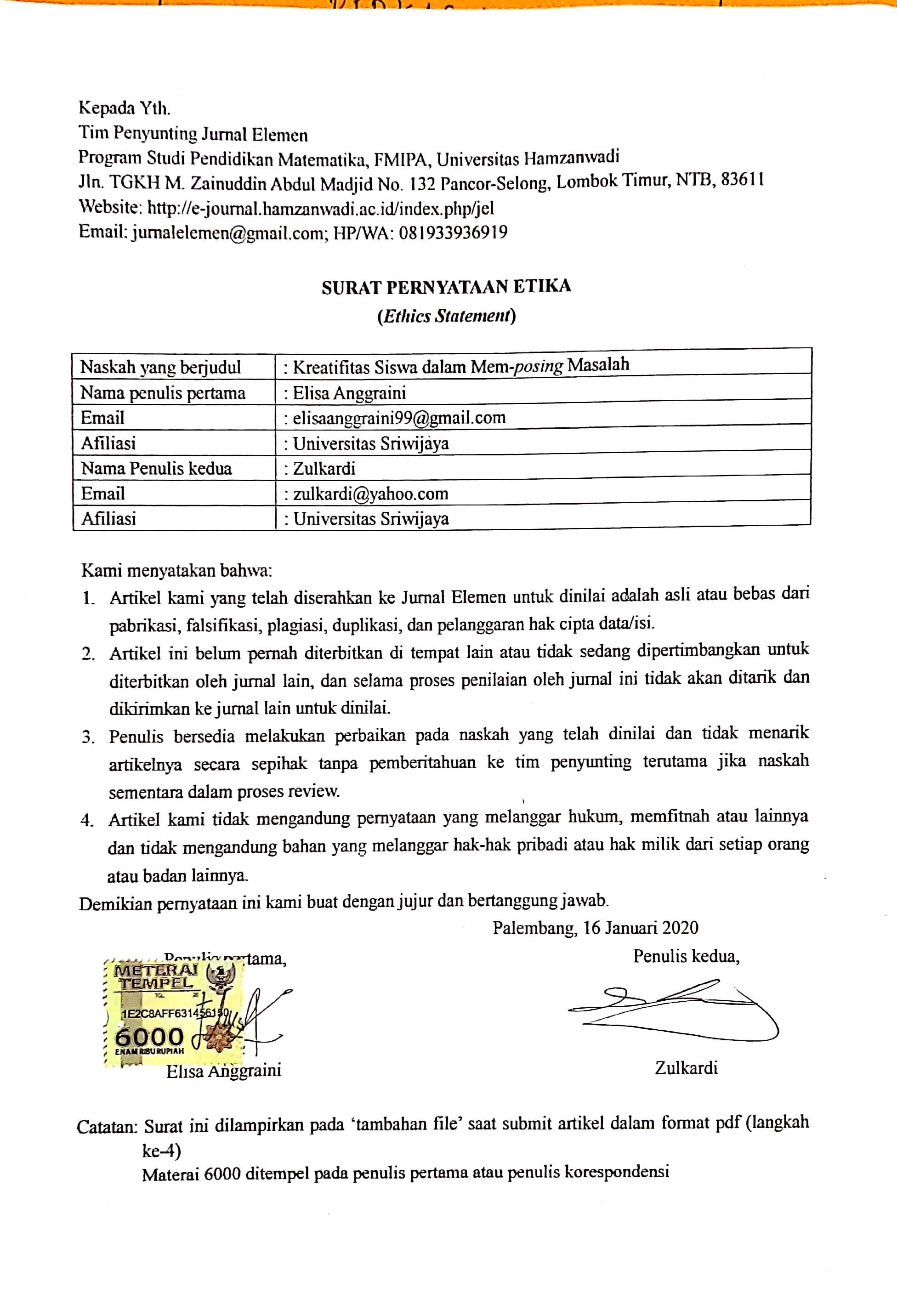 Authors who publish with the Jurnal Elemen agree to the following terms: